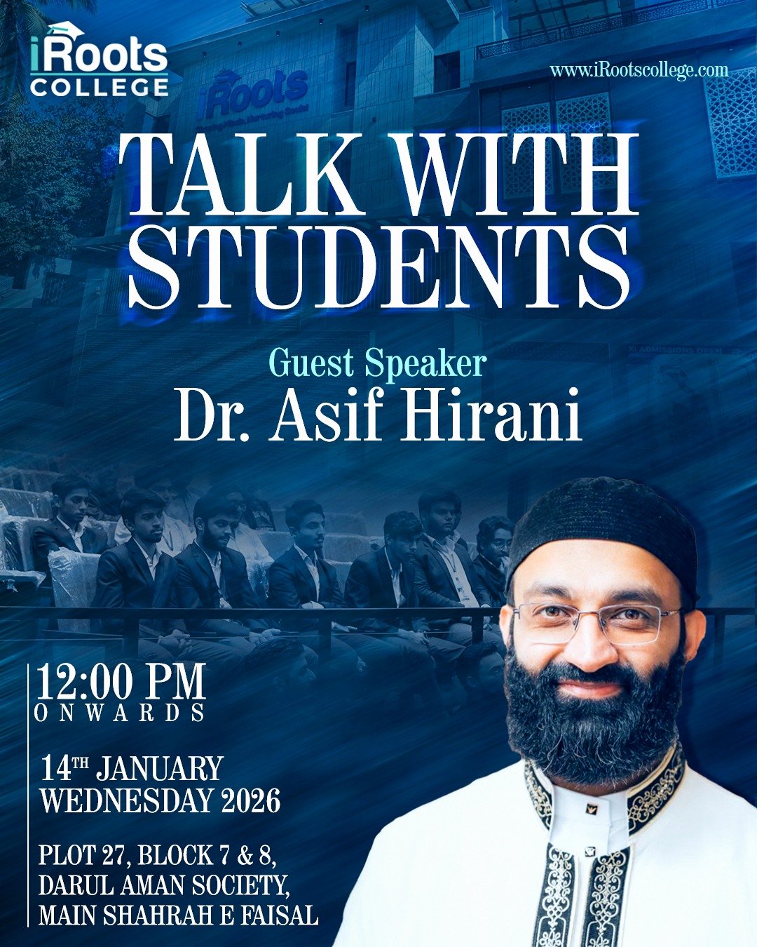 We are honored to host 𝗗𝗿. 𝗔𝘀𝗶𝗳 𝗛𝗶𝗿𝗮𝗻𝗶 for a special and insightful interaction with students at iRoots College, focused on guidance, clarity, and purposeful learning.