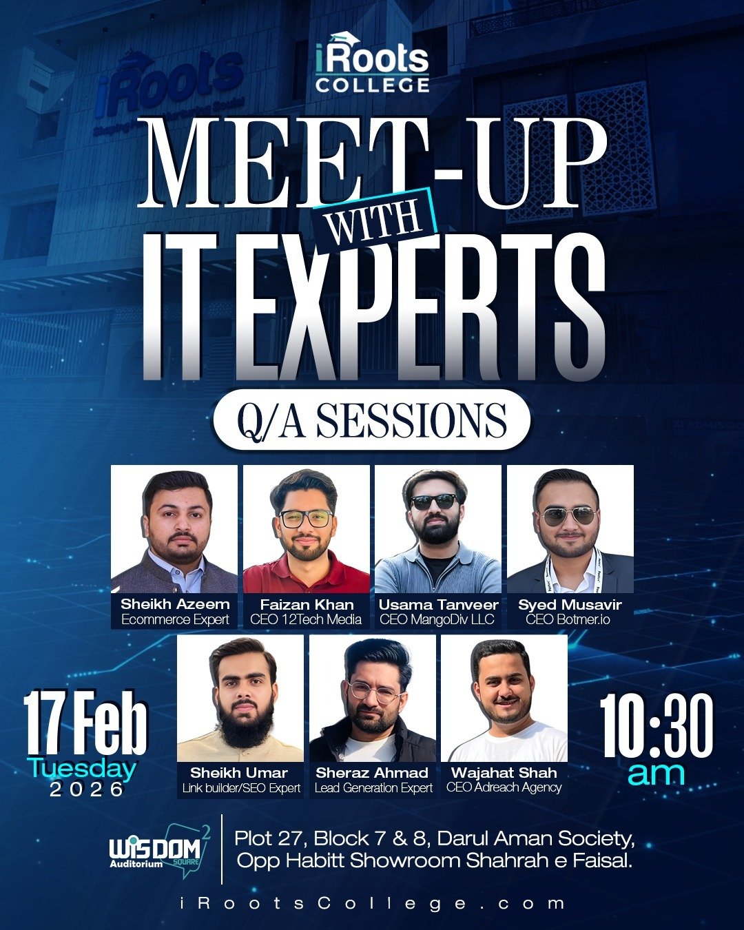 iRoots College is proud to host an engaging Meet-Up with IT Experts – Q&A Session, bringing together industry professionals and aspiring students under one roof.